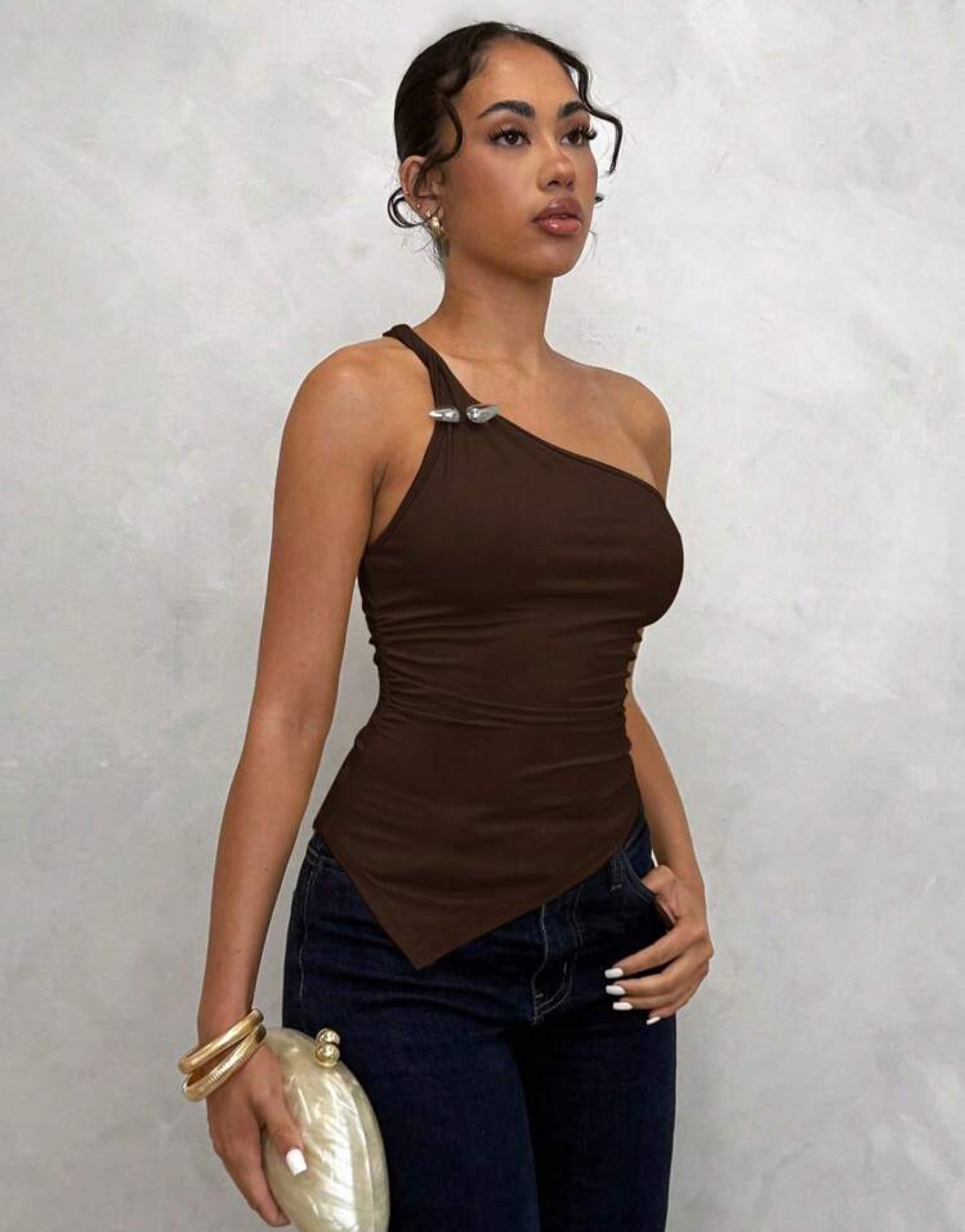 Glamine Top égalant à une épaule avec une bouclé métallique