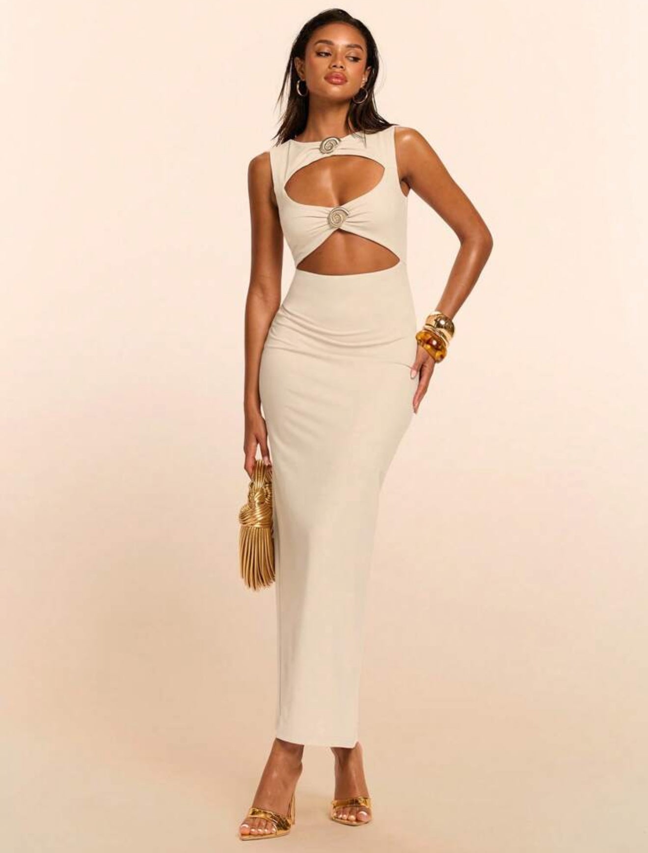 SHEIN BAE Robe mini sexy sans manches avec décorations métalliques évidées pour femmes